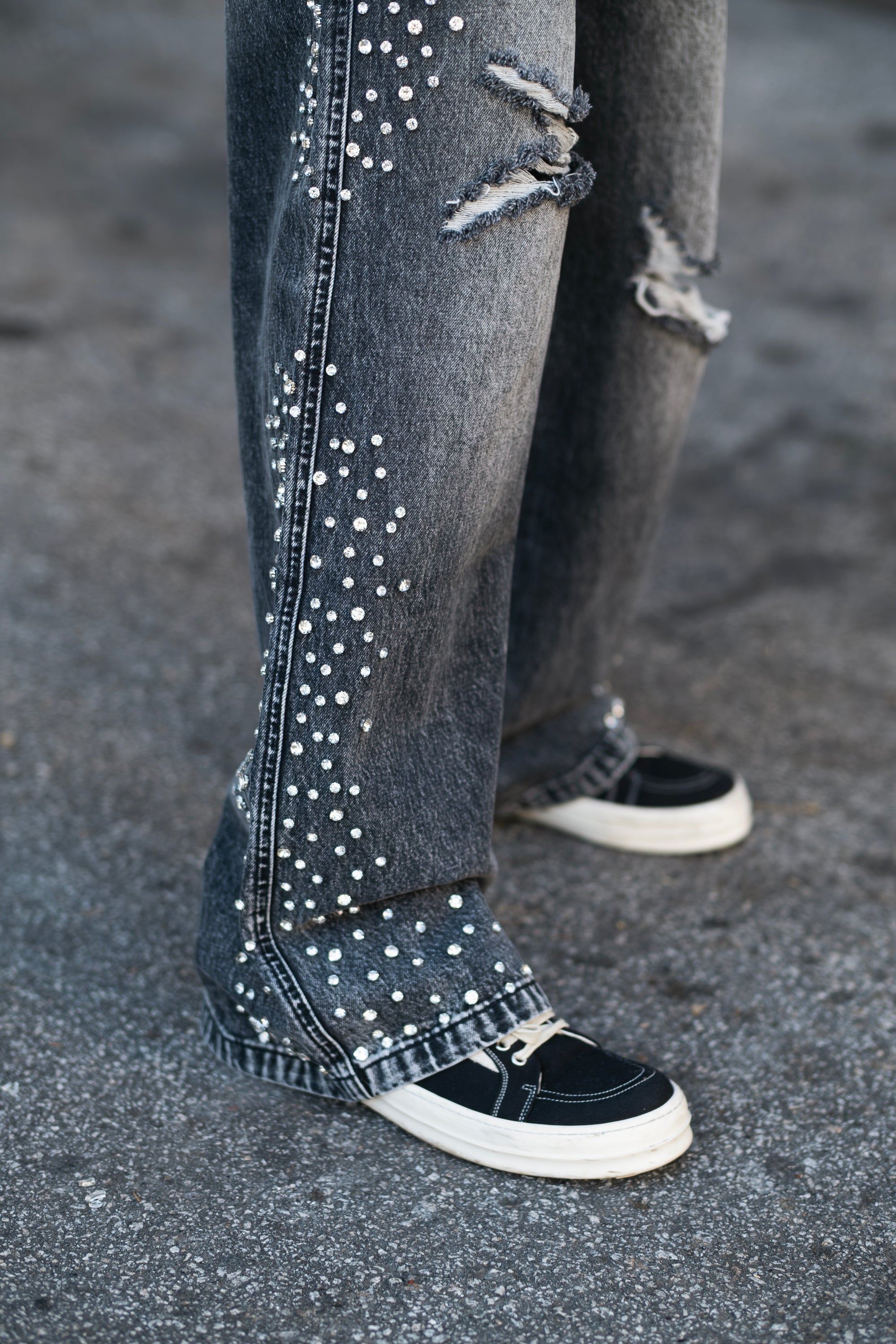 ‘Eclipse’ Grey Acid Wash Rhinestone Sweats